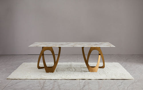 Hesper-Luxury Bronze Base Dining Table With Wood Top