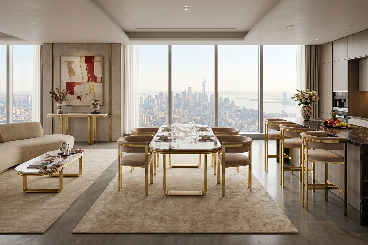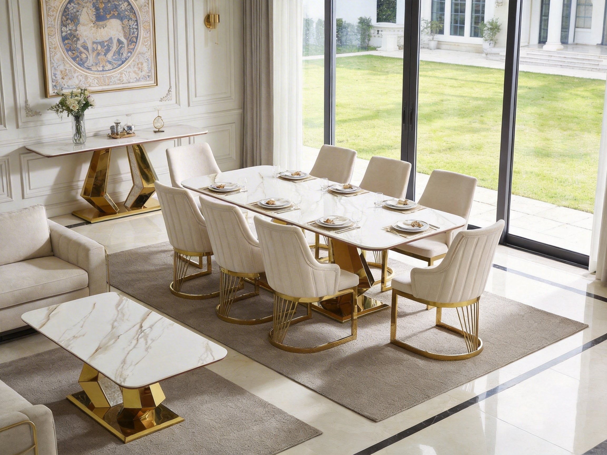 TORIN Modern Sintered Stone Dining Table with Walnut & Matt Gold Accents