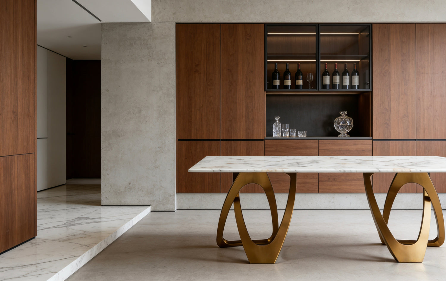 LUNE Luxury Walnut Dining Table With Kasgold Sintered Stone Top