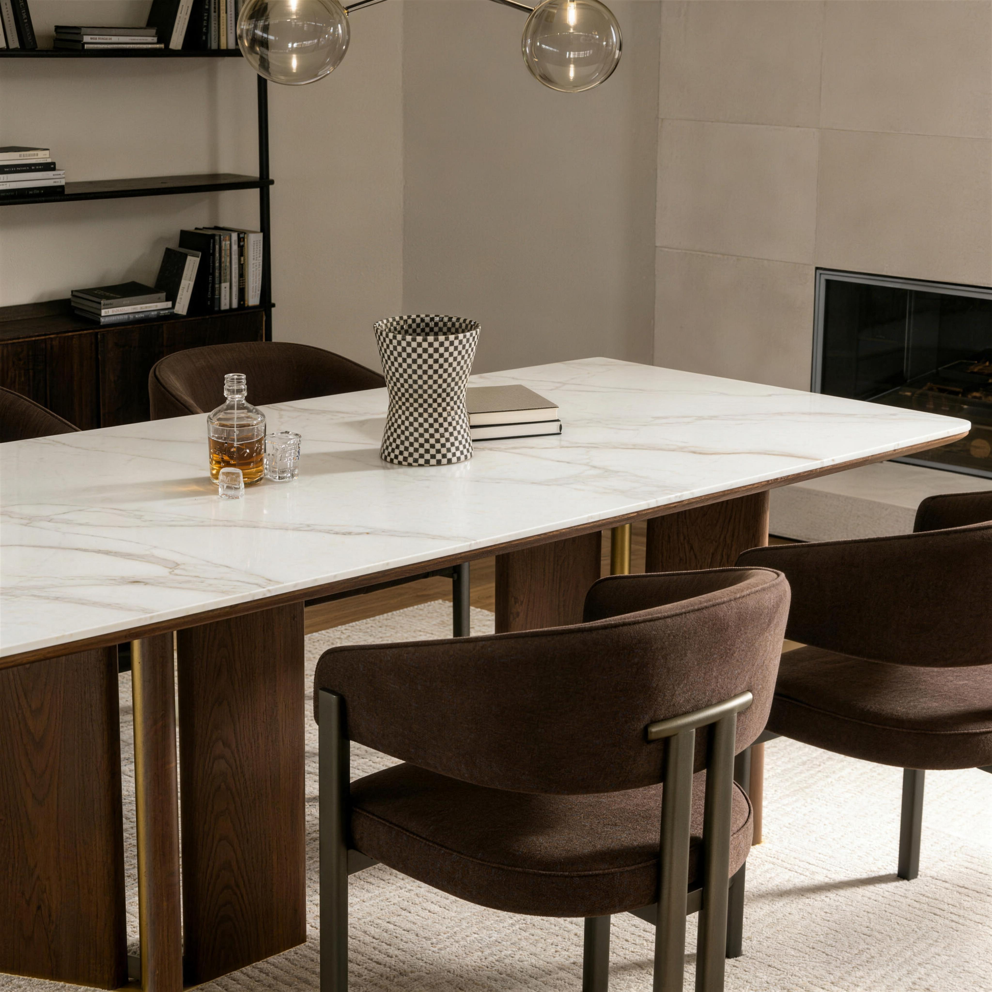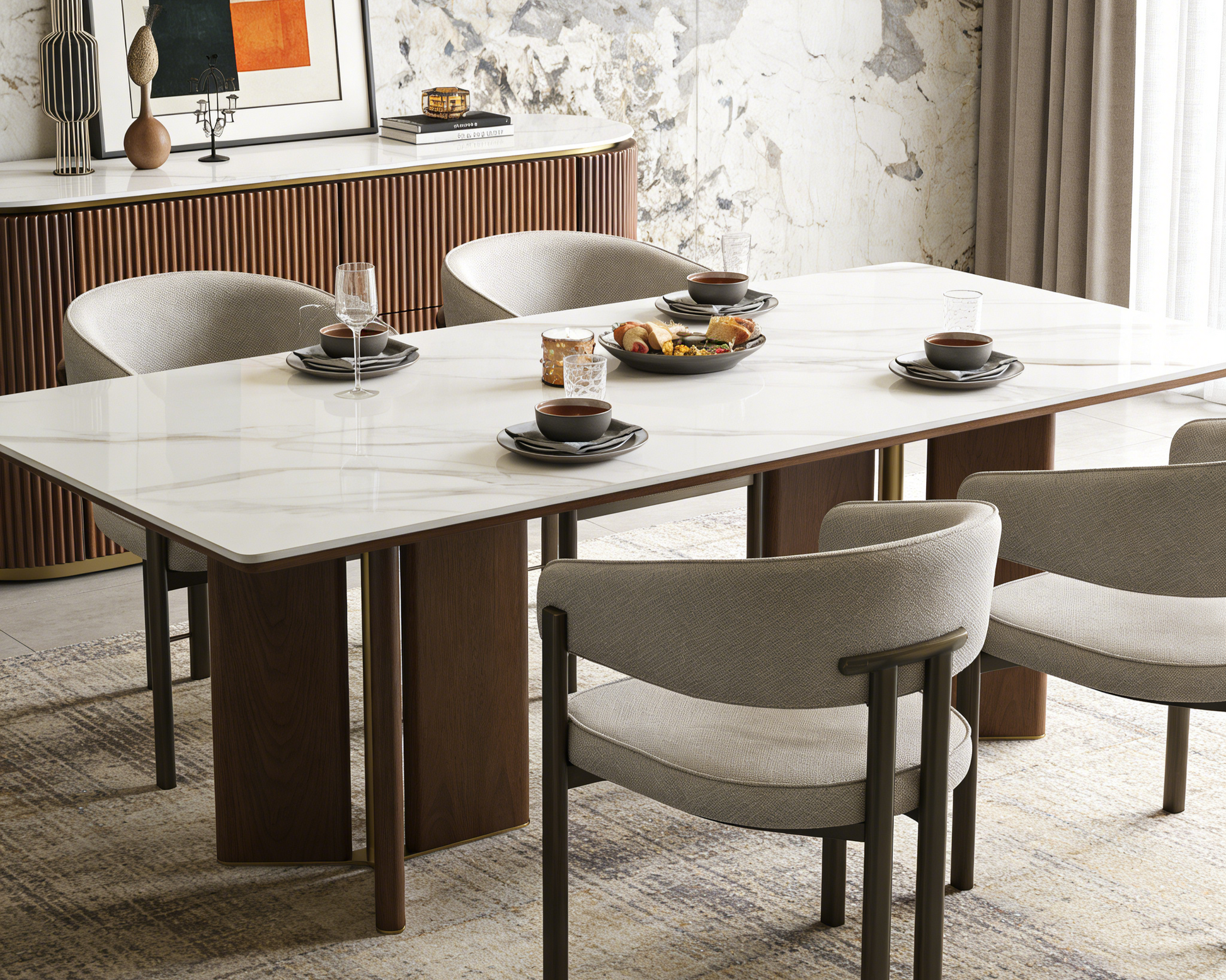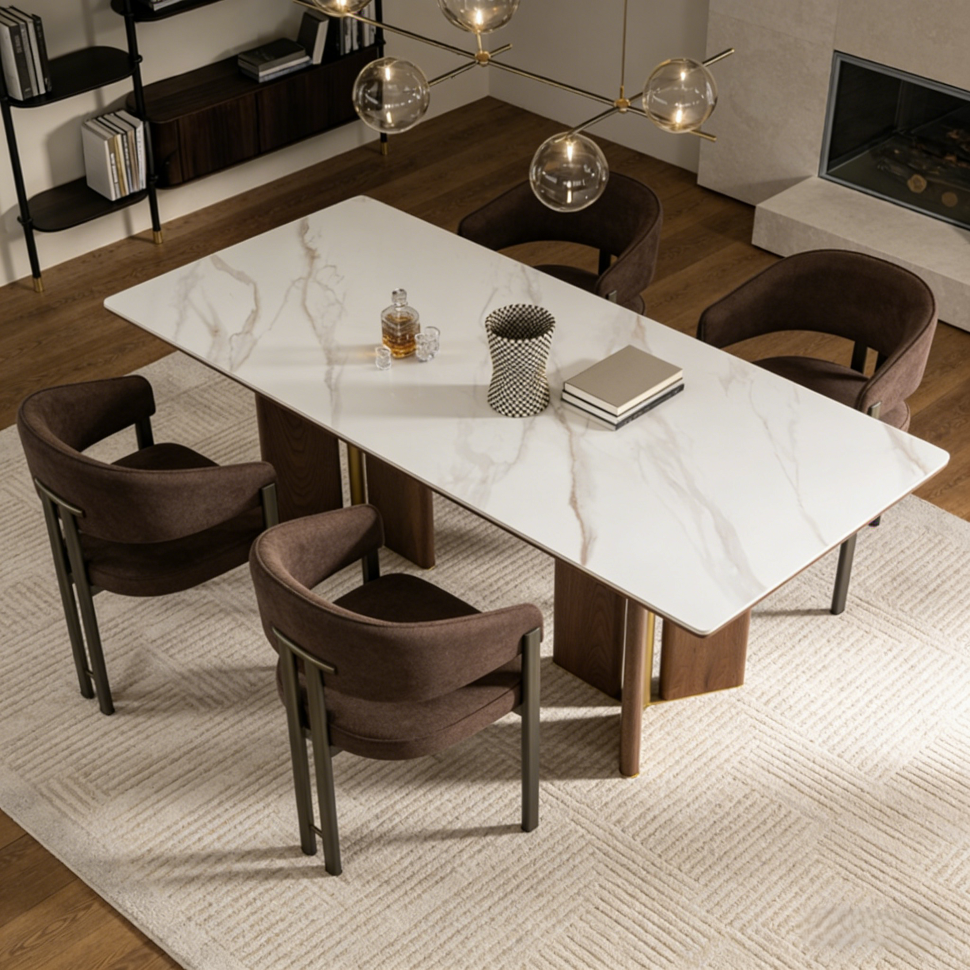 - طاولة طعام تورين الفاخرة والعصرية من خشب الجوز والذهب