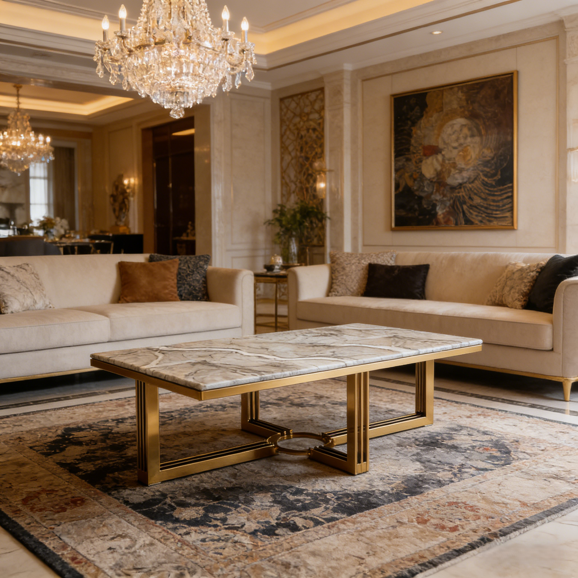 - طاولة قهوة فاخرة من الرخام لغرف المعيشة الراقية