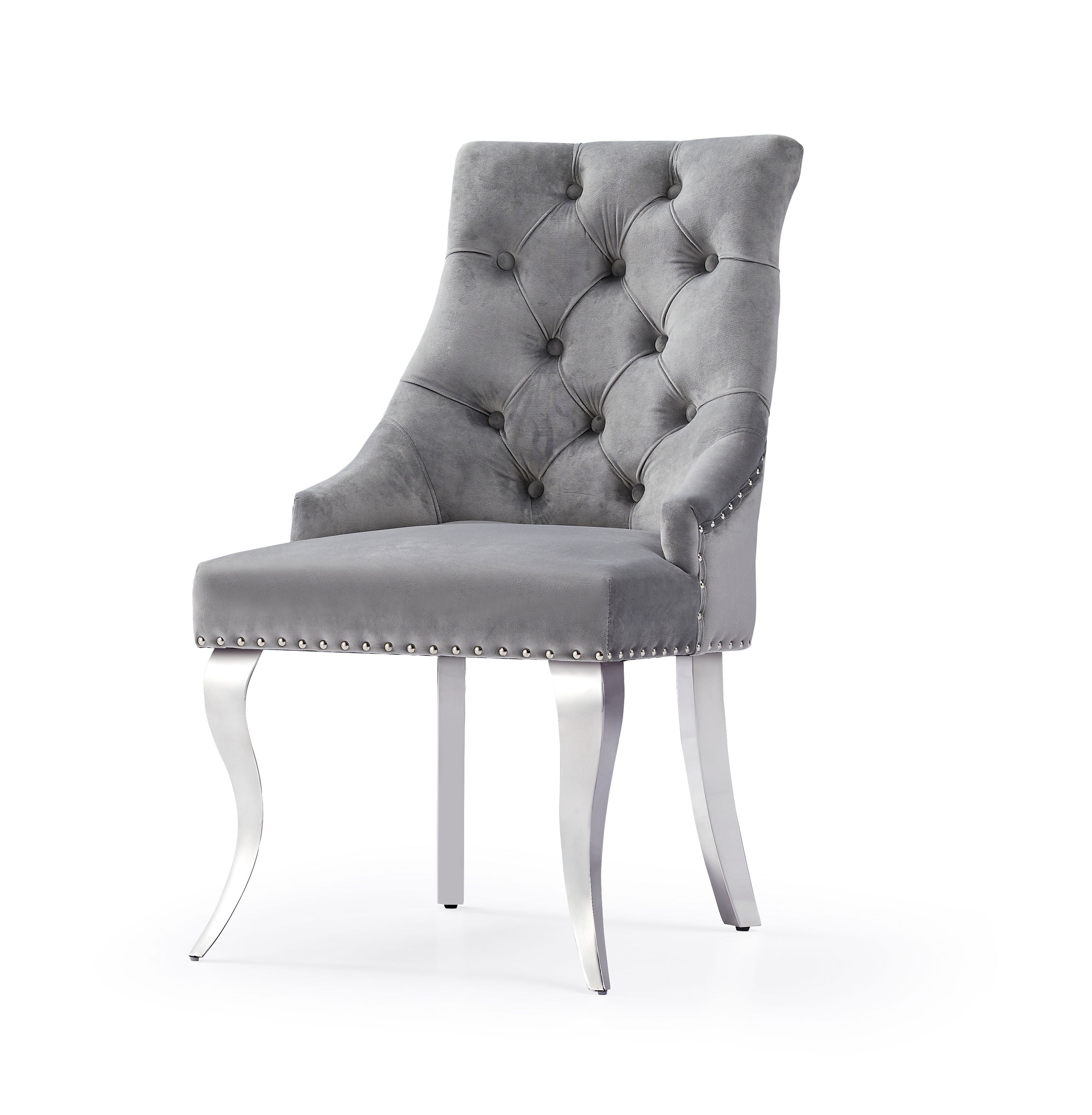Vendor:SRF LIVINGModern Gray Velvet Button Tufted Dining Chair