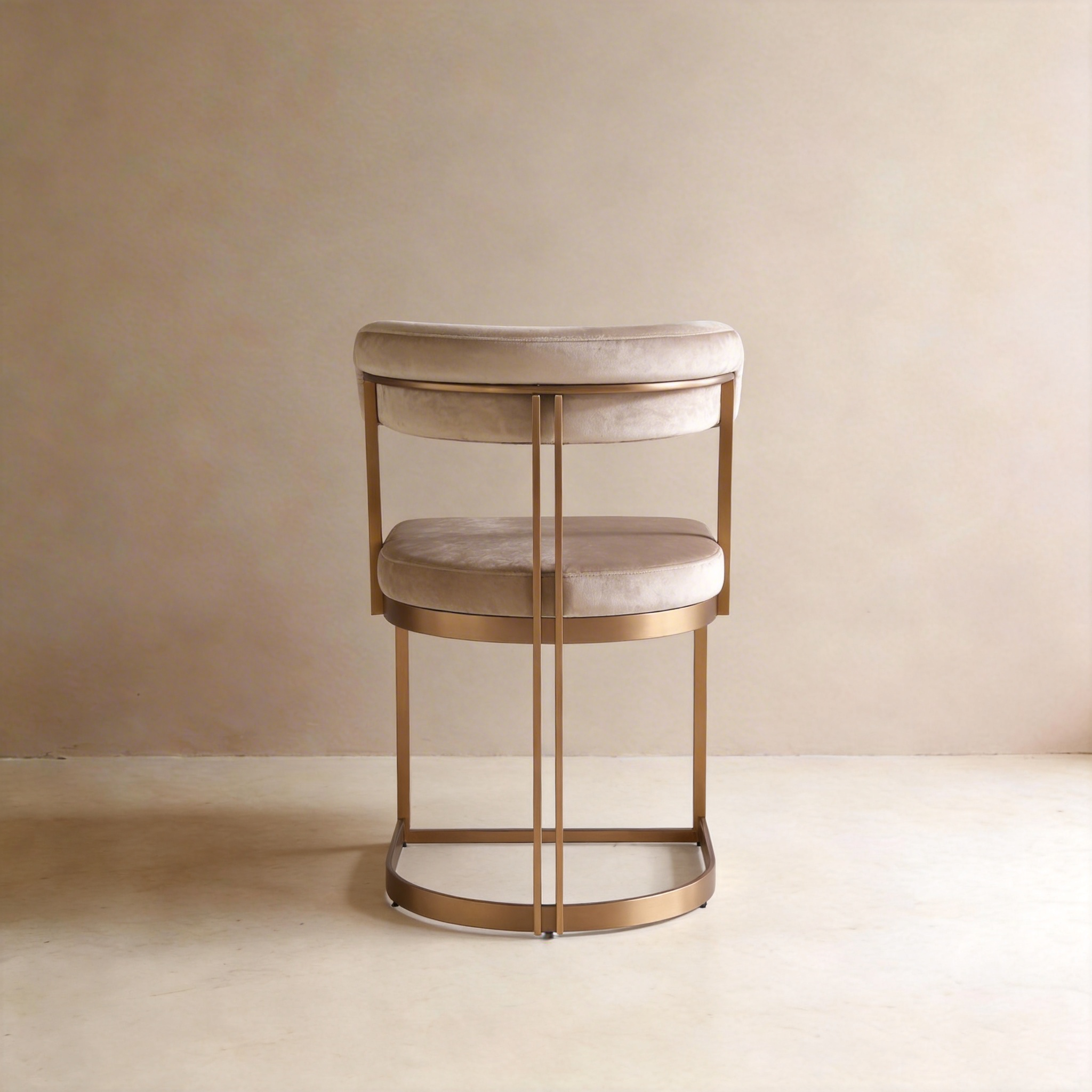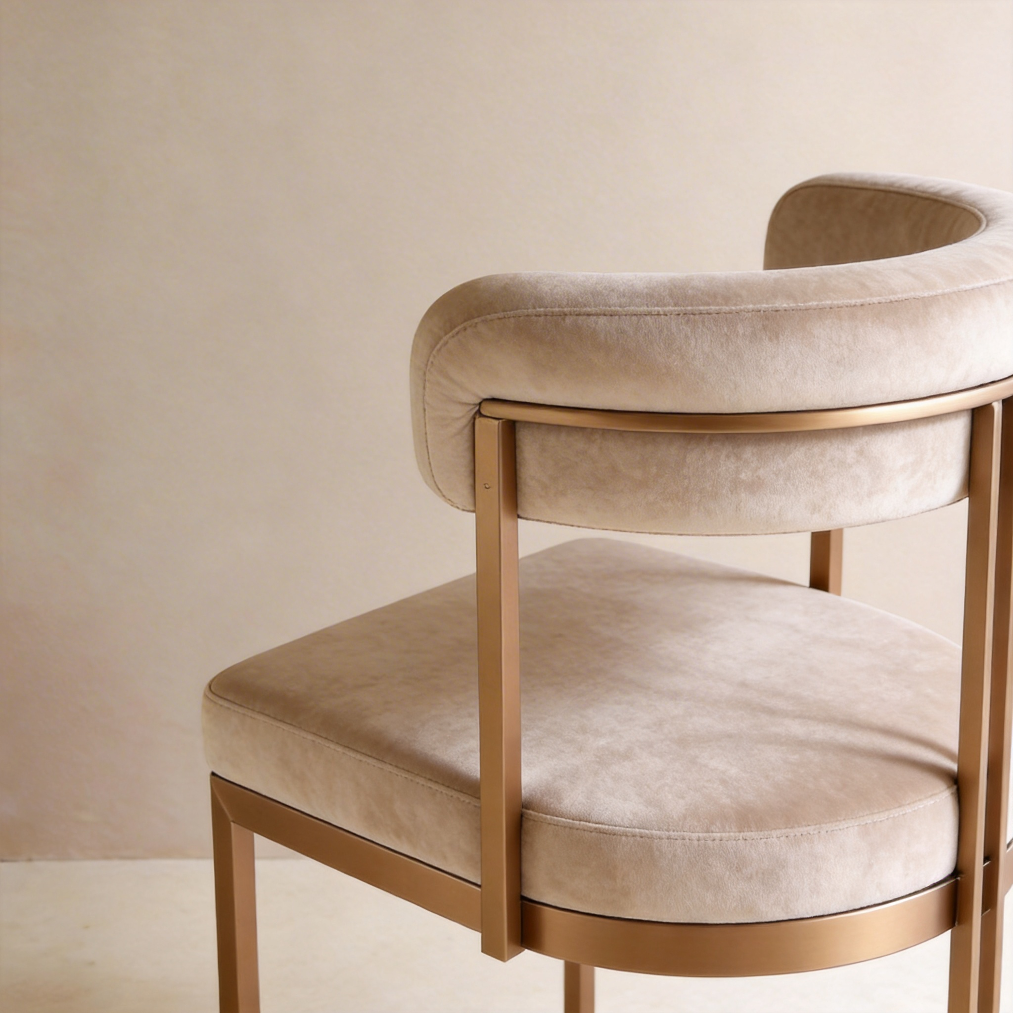 Minimalist Beige Velvet Dining Chair with Matt Rose Gold Metal Frame