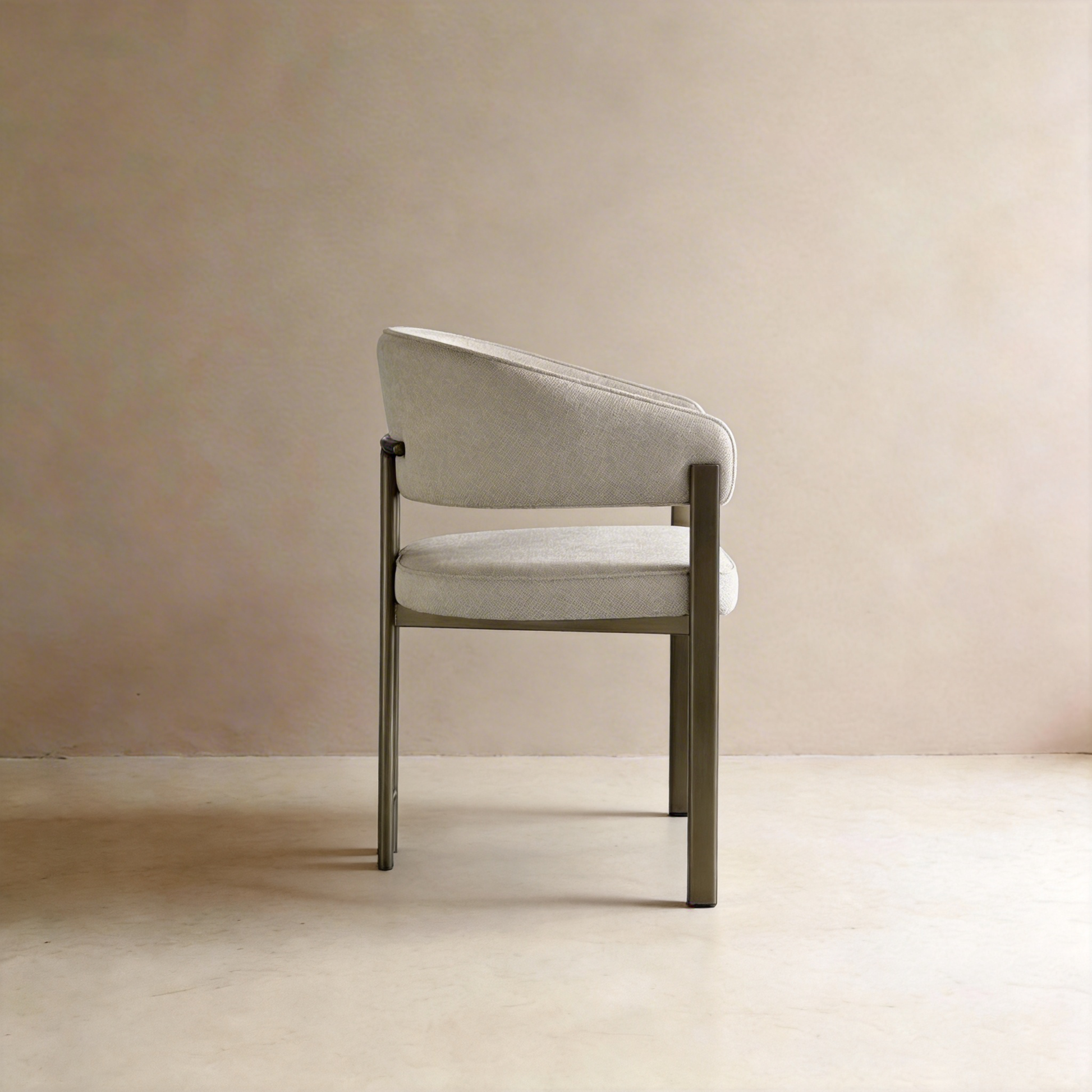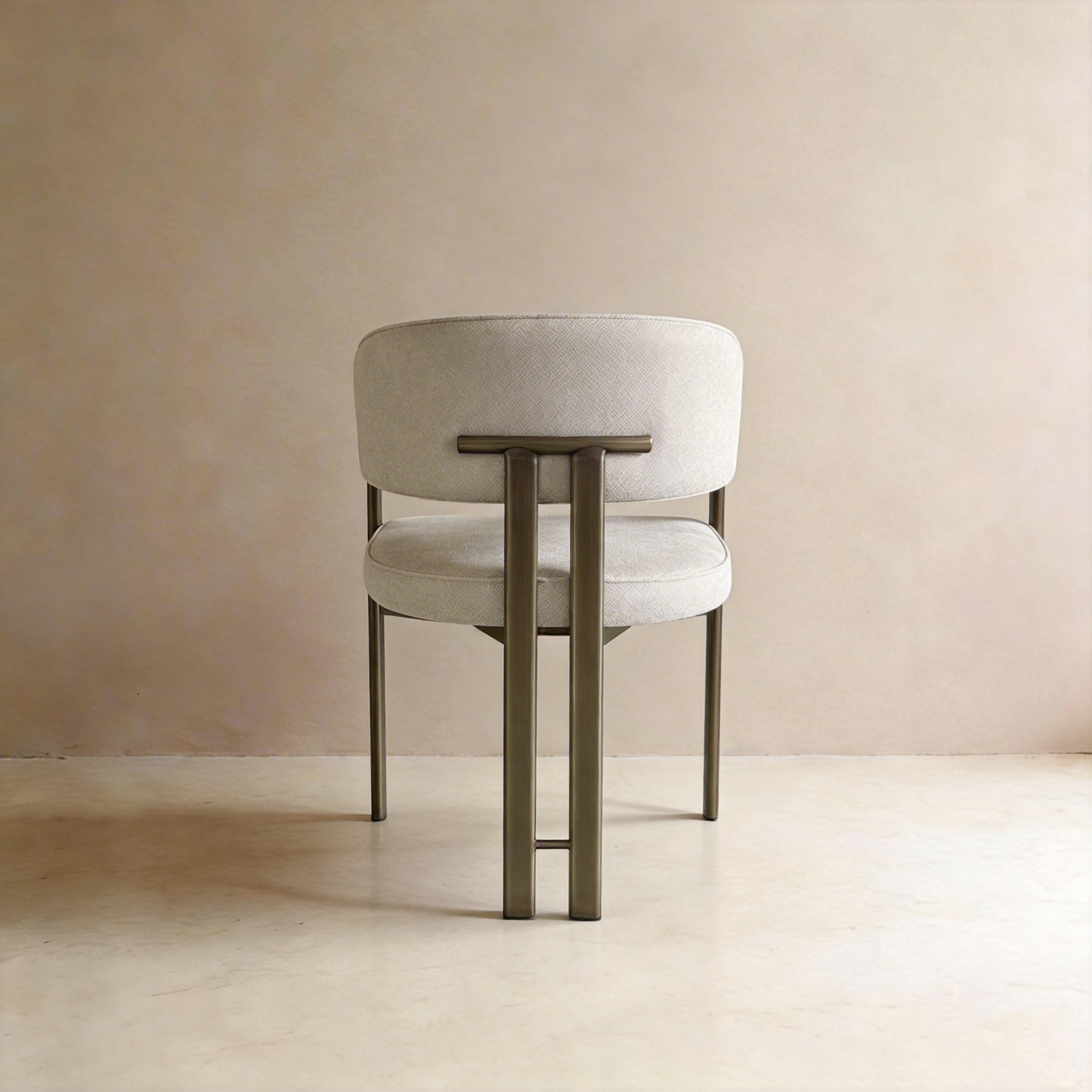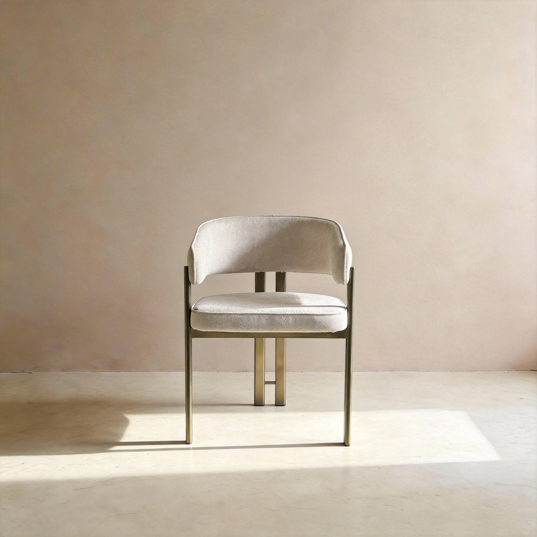Elevate your dining space with this elegant modern chair, crafted with premium cream linen upholstery that delivers a natural, breathable texture and timeless charm. The sturdy bronze metal frame features a distinctive geometric cross-back design, offering exceptional stability while adding a refined, luxurious touch. The plush padded seat and wrapped backrest ensure ultimate comfort for long meals and gatherings. Perfect for contemporary dining rooms, vanity areas, or living spaces, it blends natural warmth with sophisticated metallic accents for a stylish focal point.