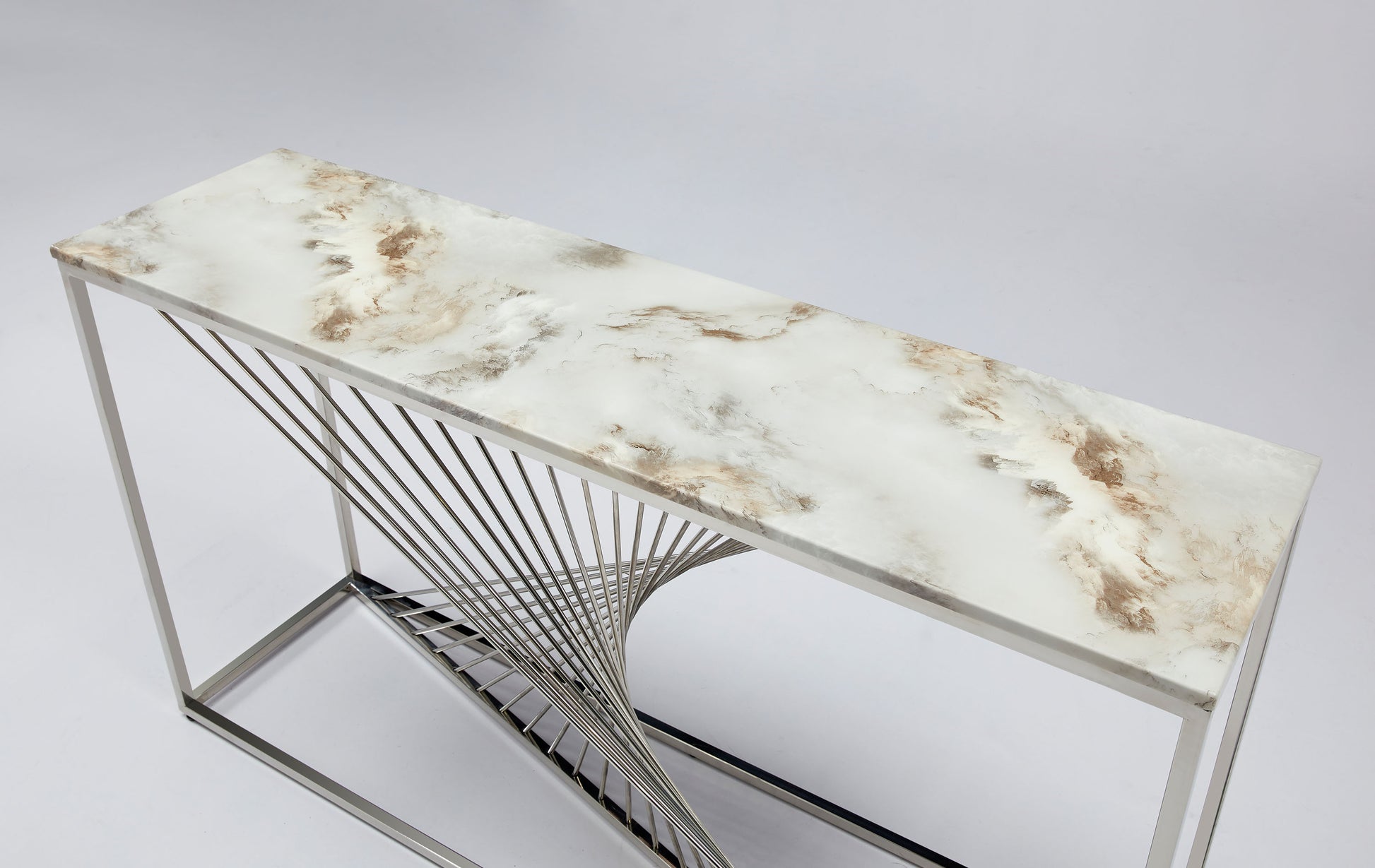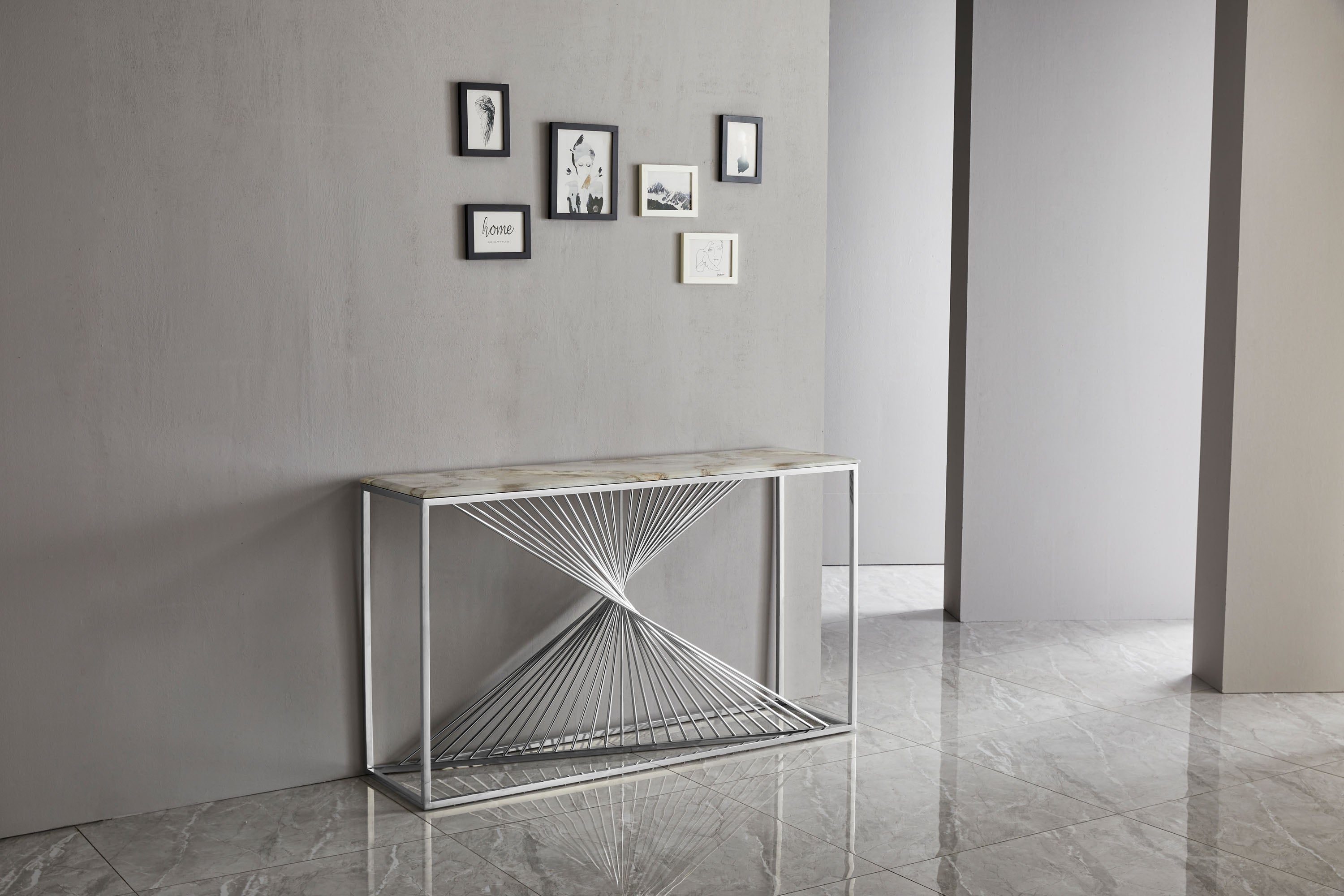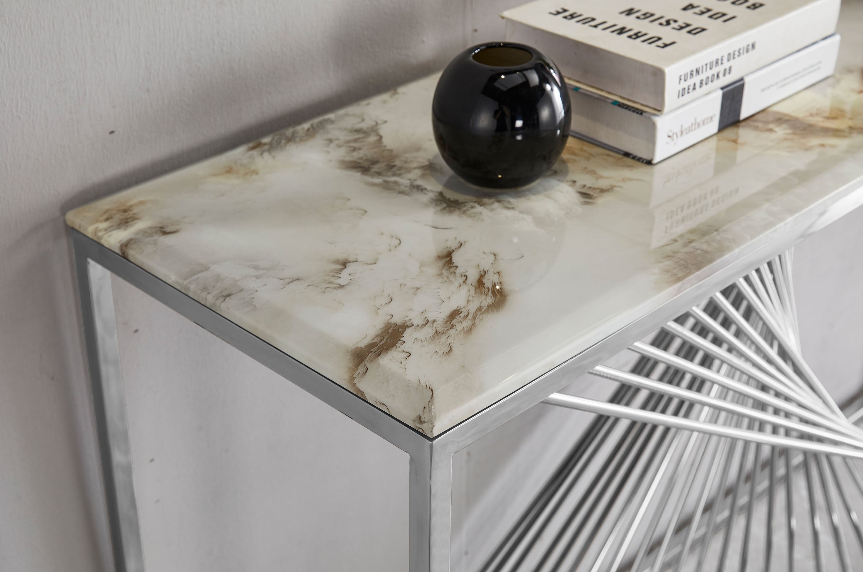 Console SRF Modern Twist en acier inoxydable avec plateau en marbre