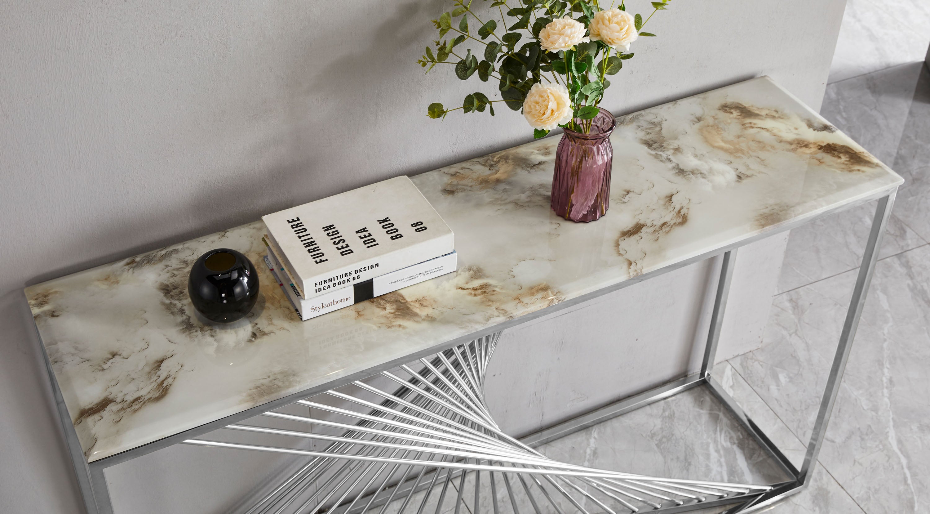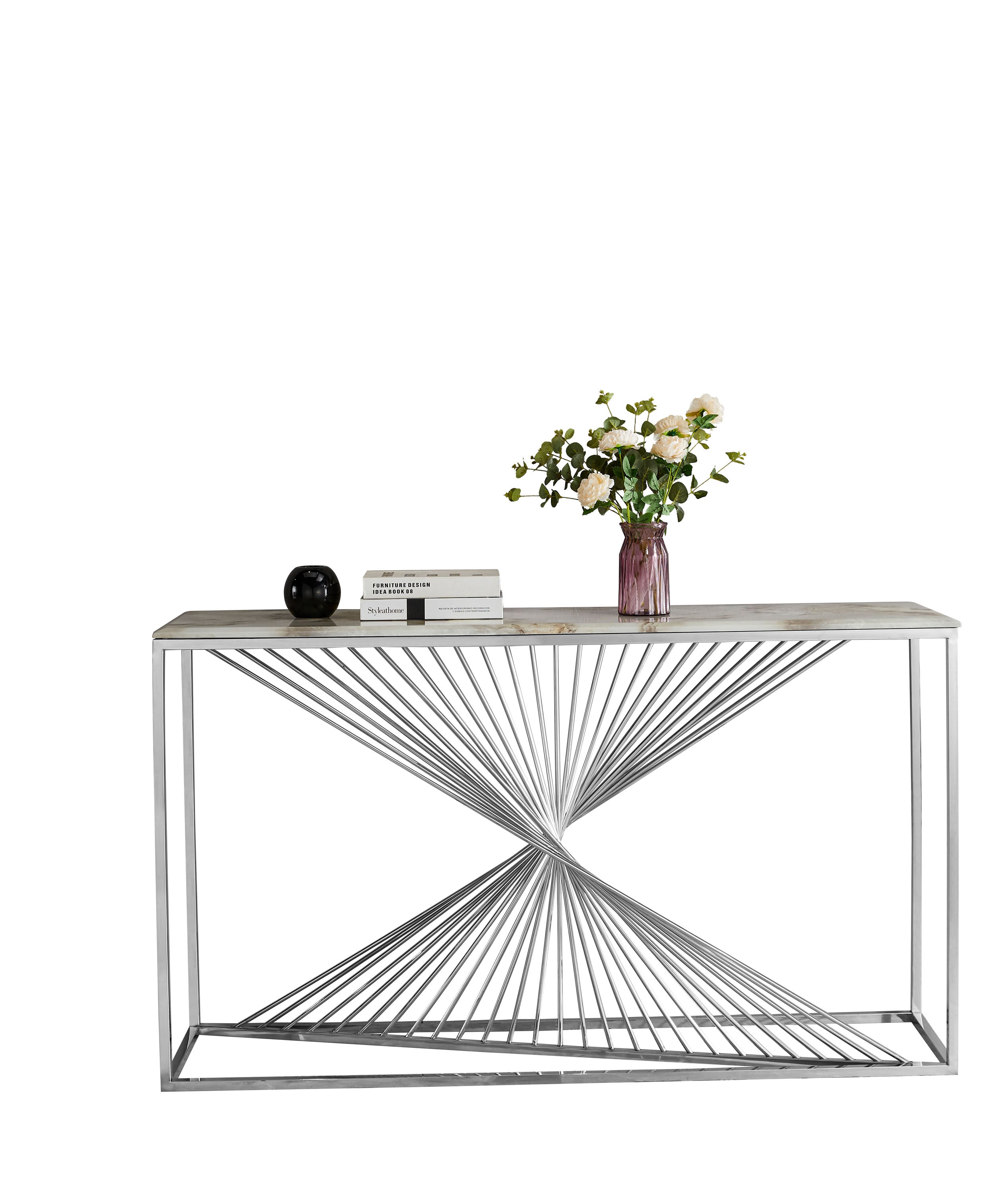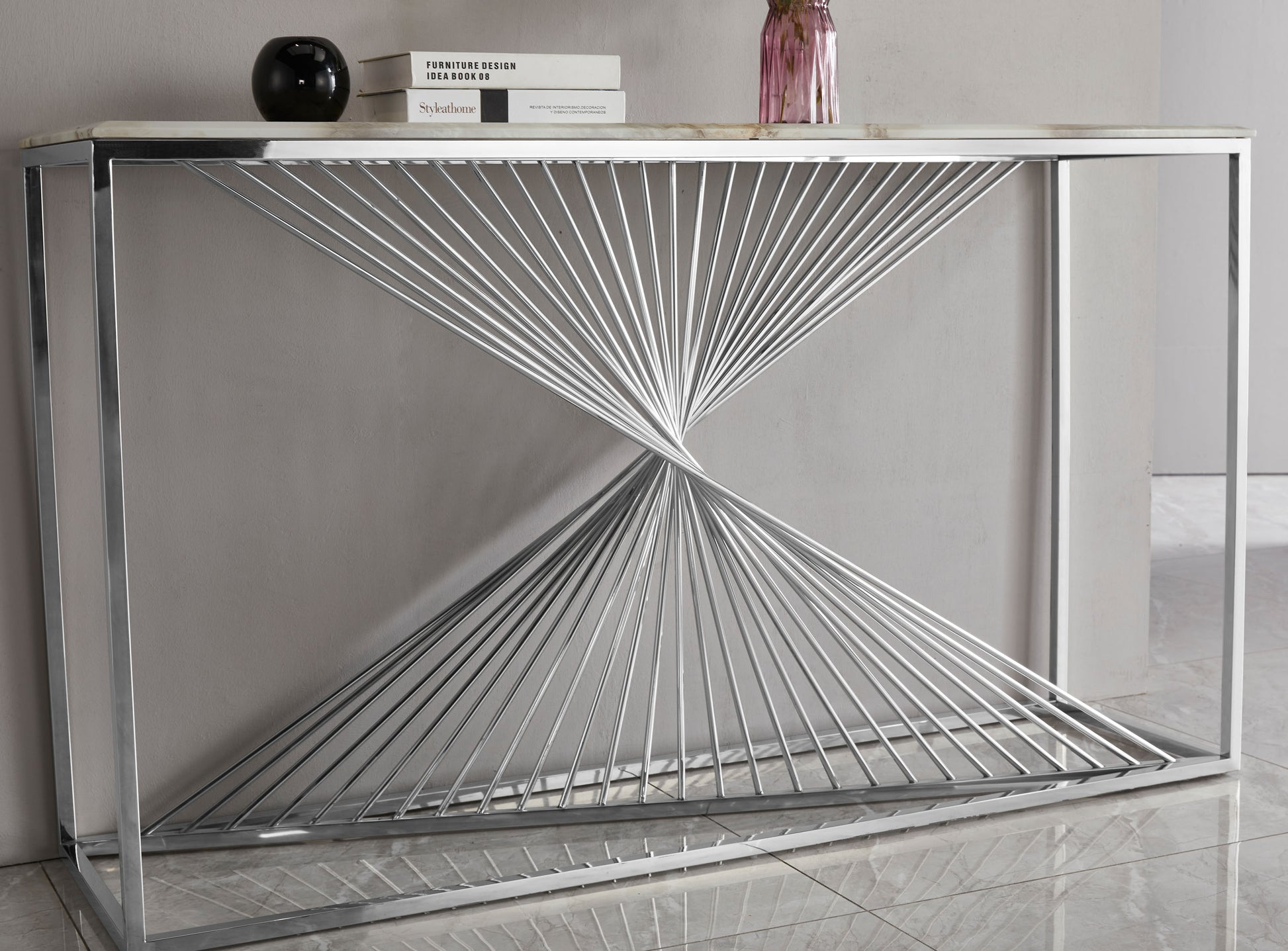 Console SRF Modern Twist en acier inoxydable avec plateau en marbre
