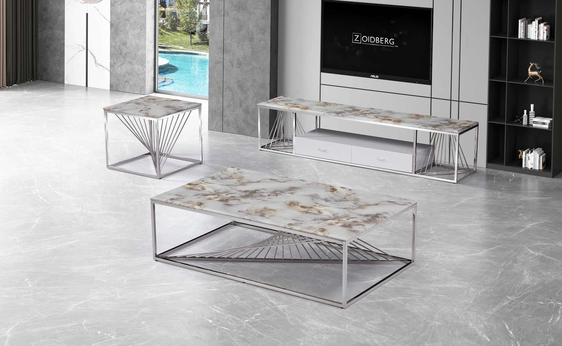 Ensemble table basse et table d'appoint en marbre moderne