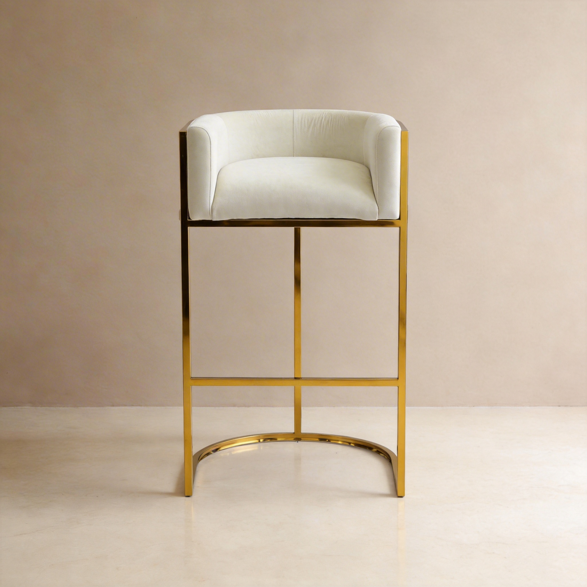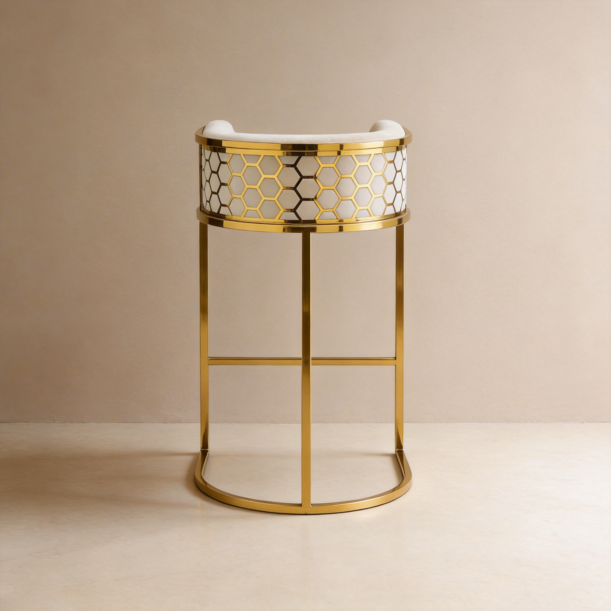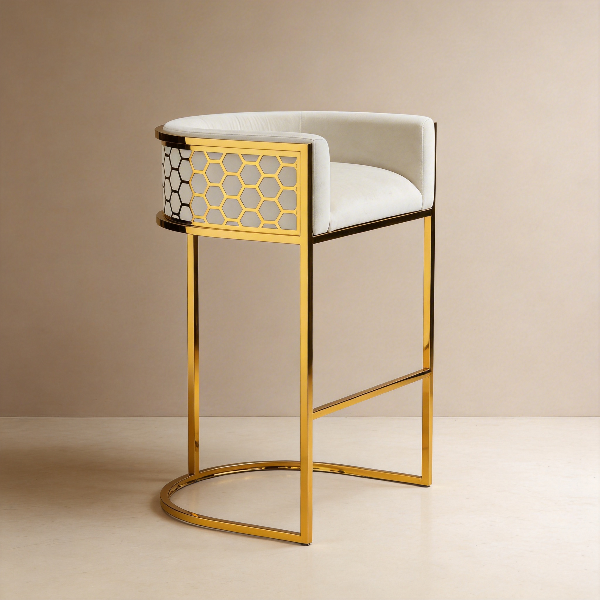 - Honeycomb White Velvet Bar Chair With SS Gold Legs Commercial Restaurant