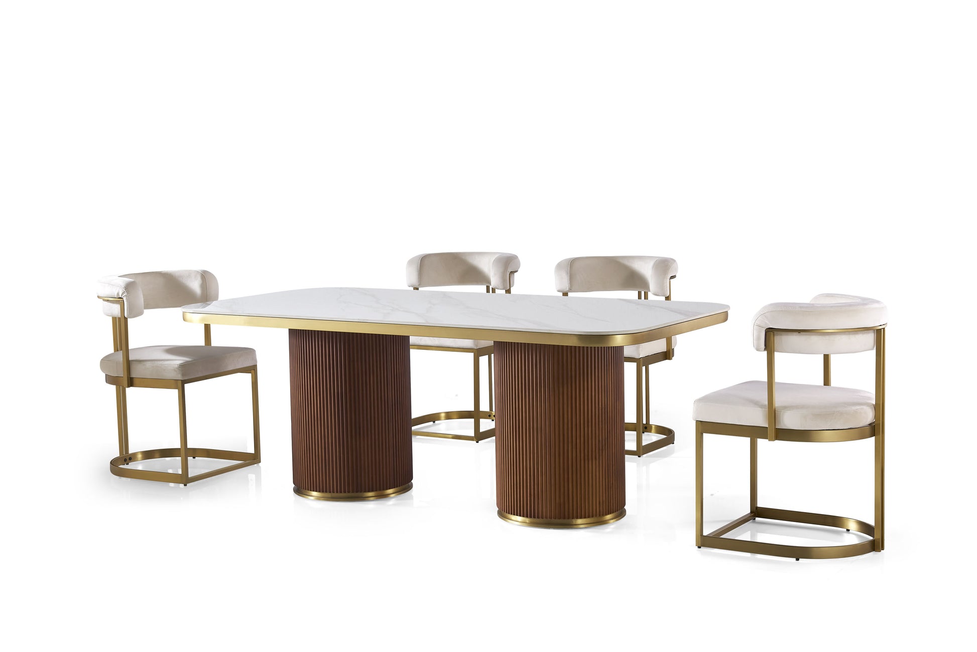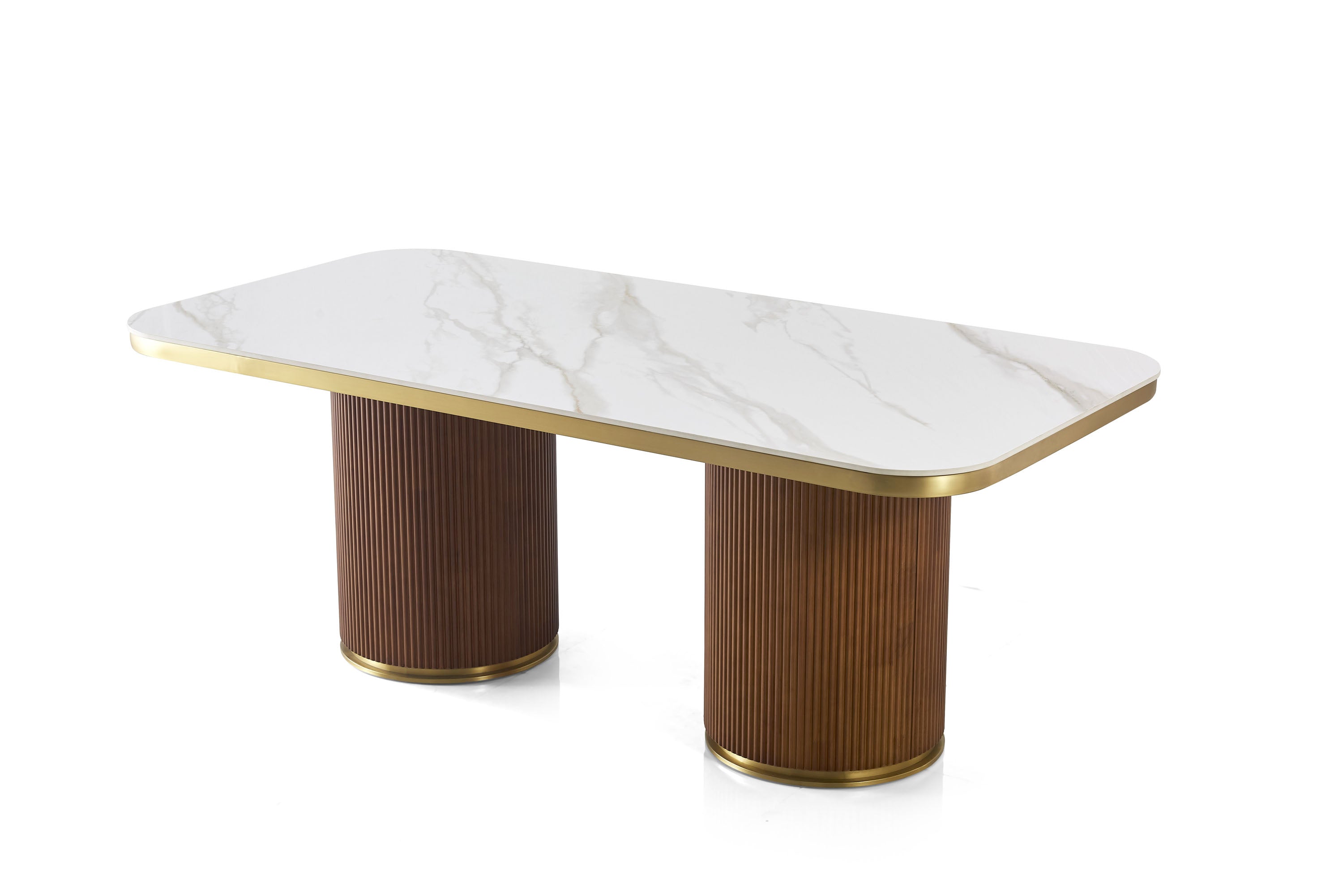 LUNE Luxury Walnut Dining Table With Kasgold Sintered Stone Top