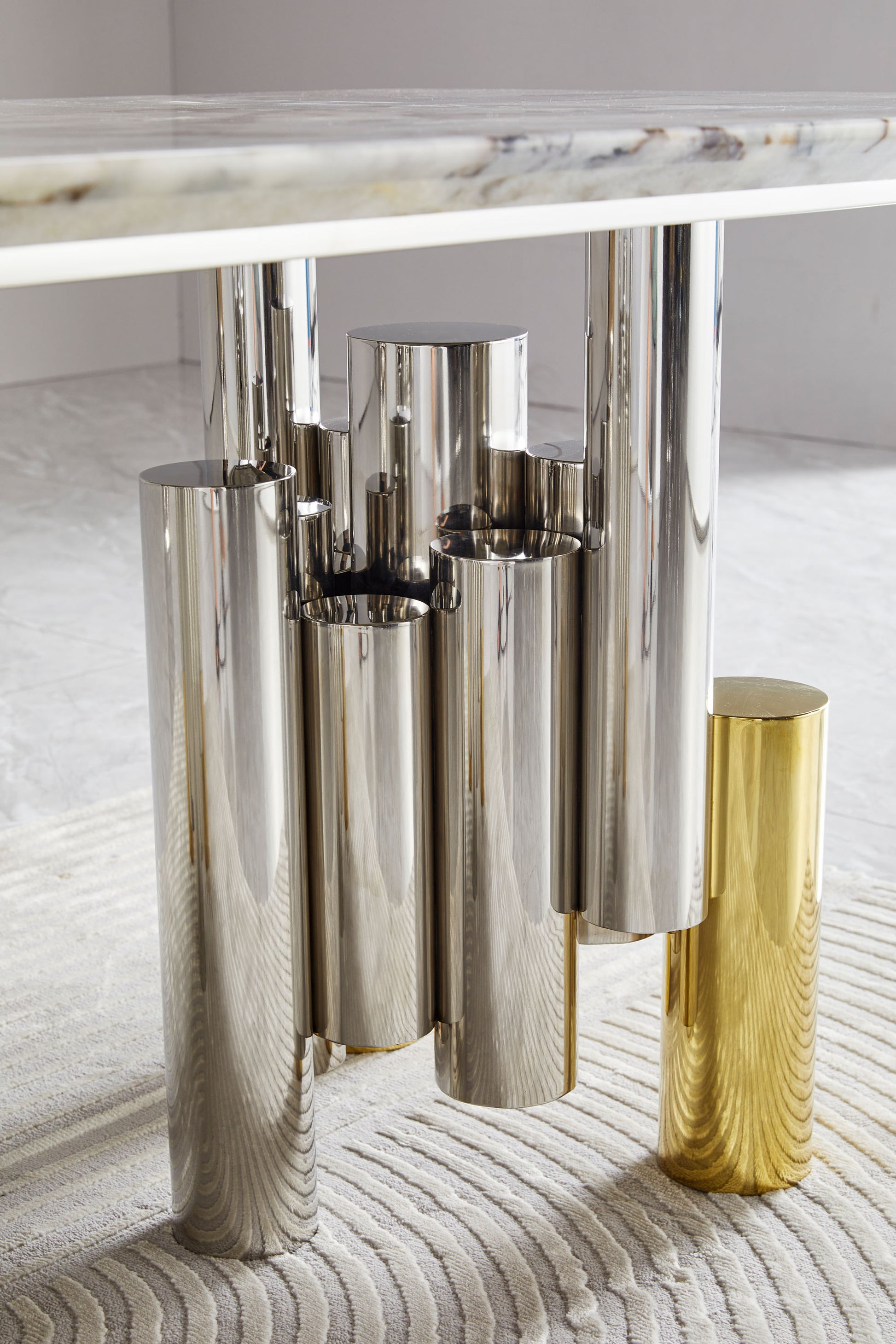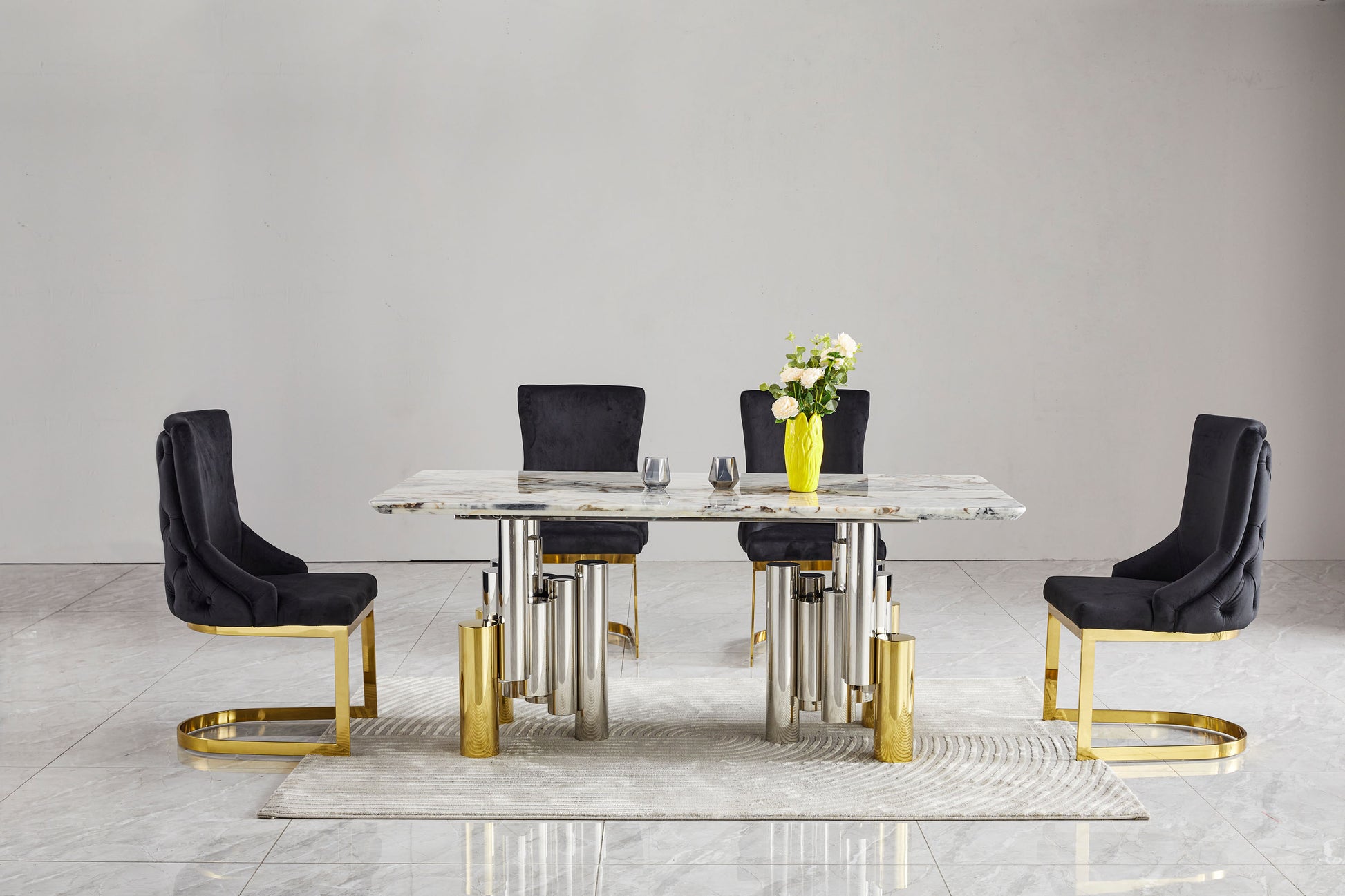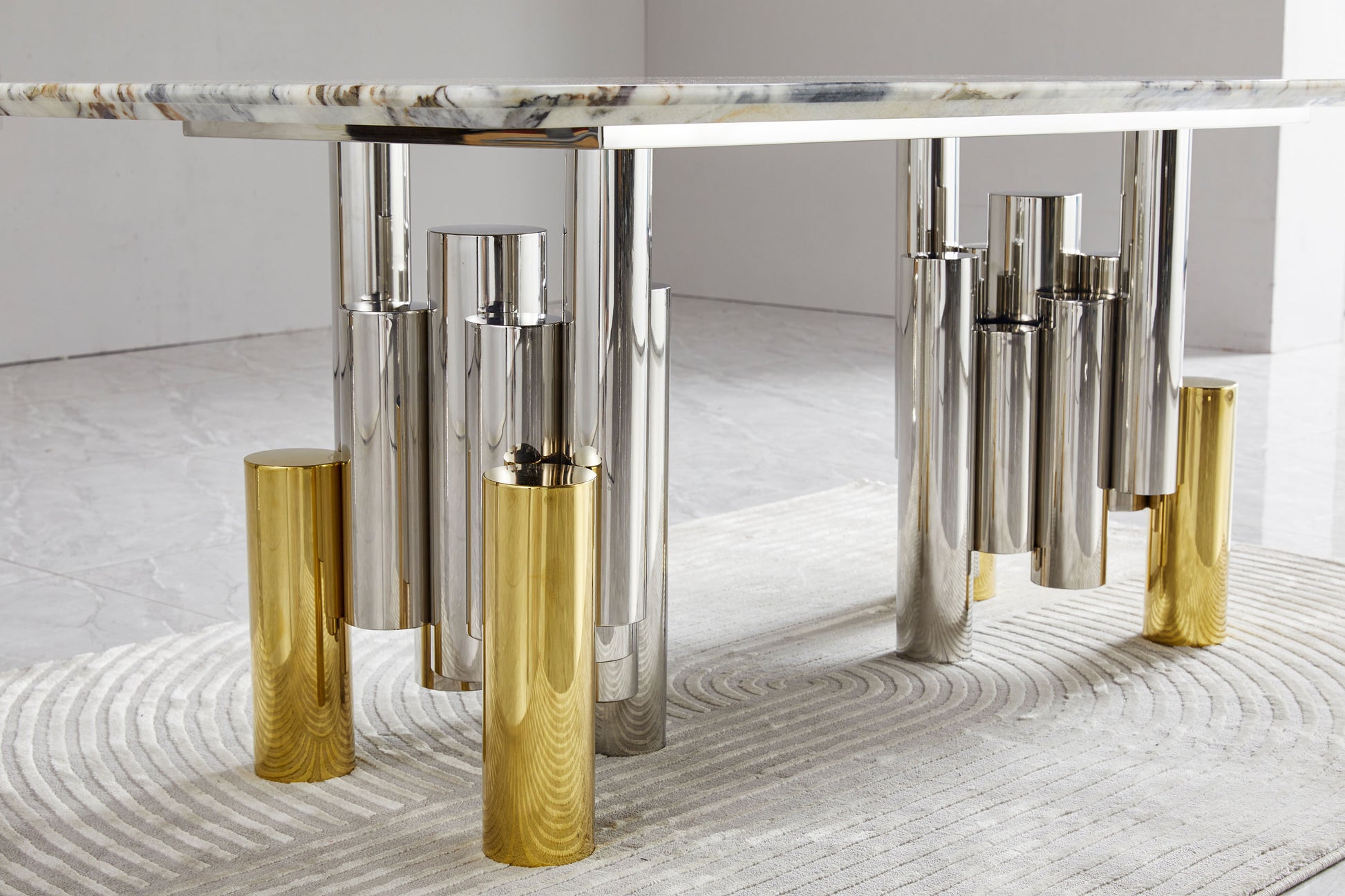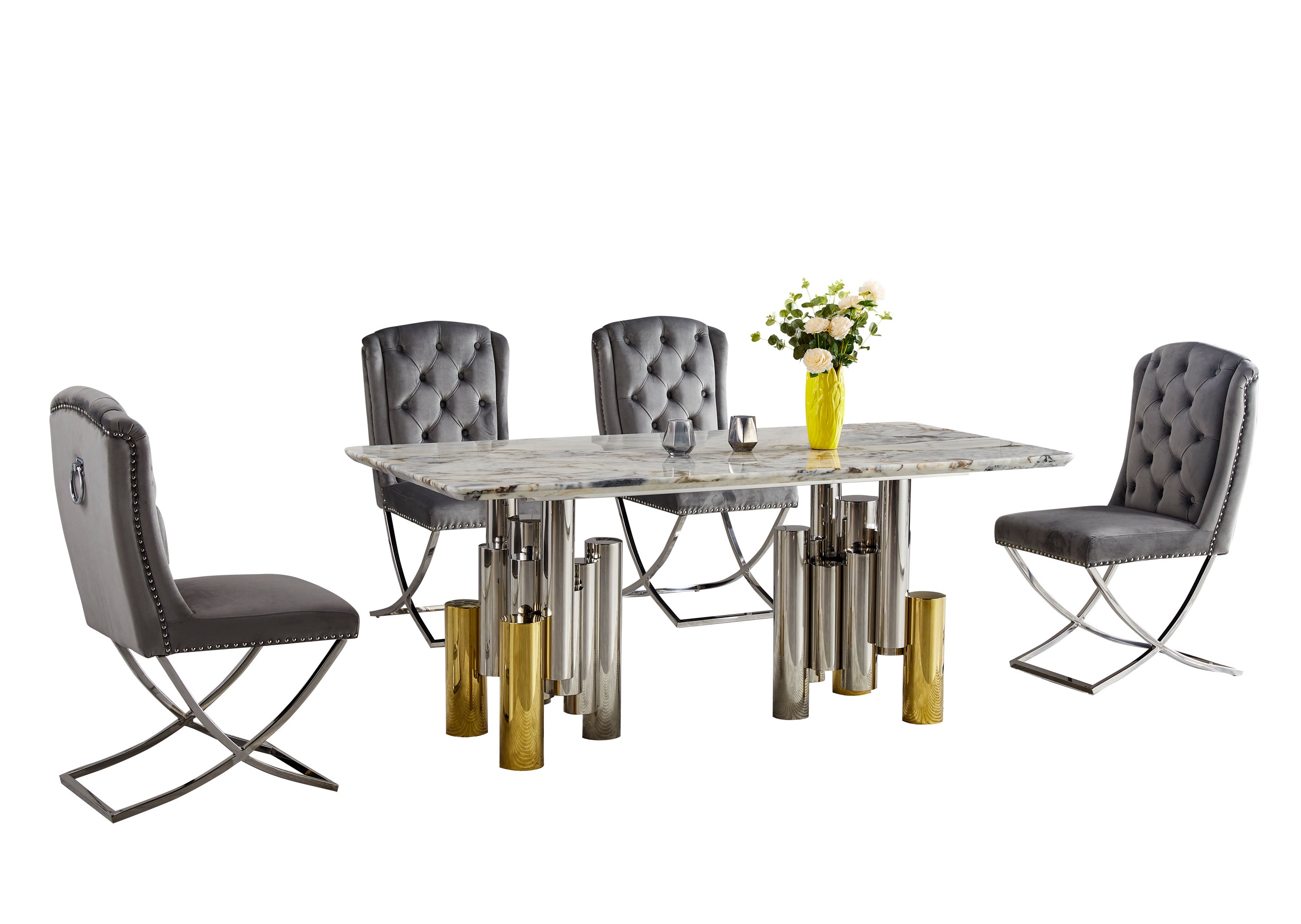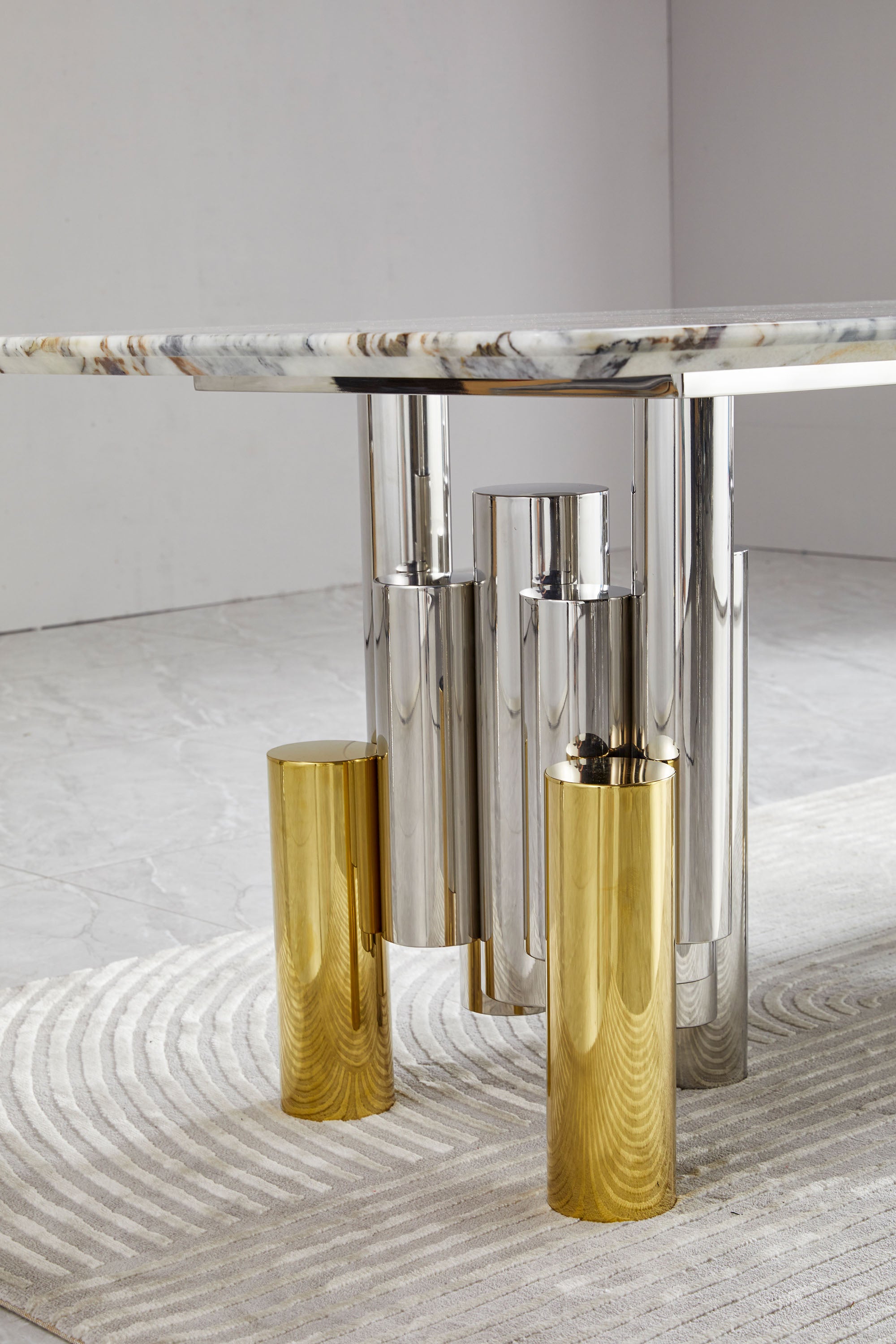 Luxury Marble Gold Silver Base Dining Table